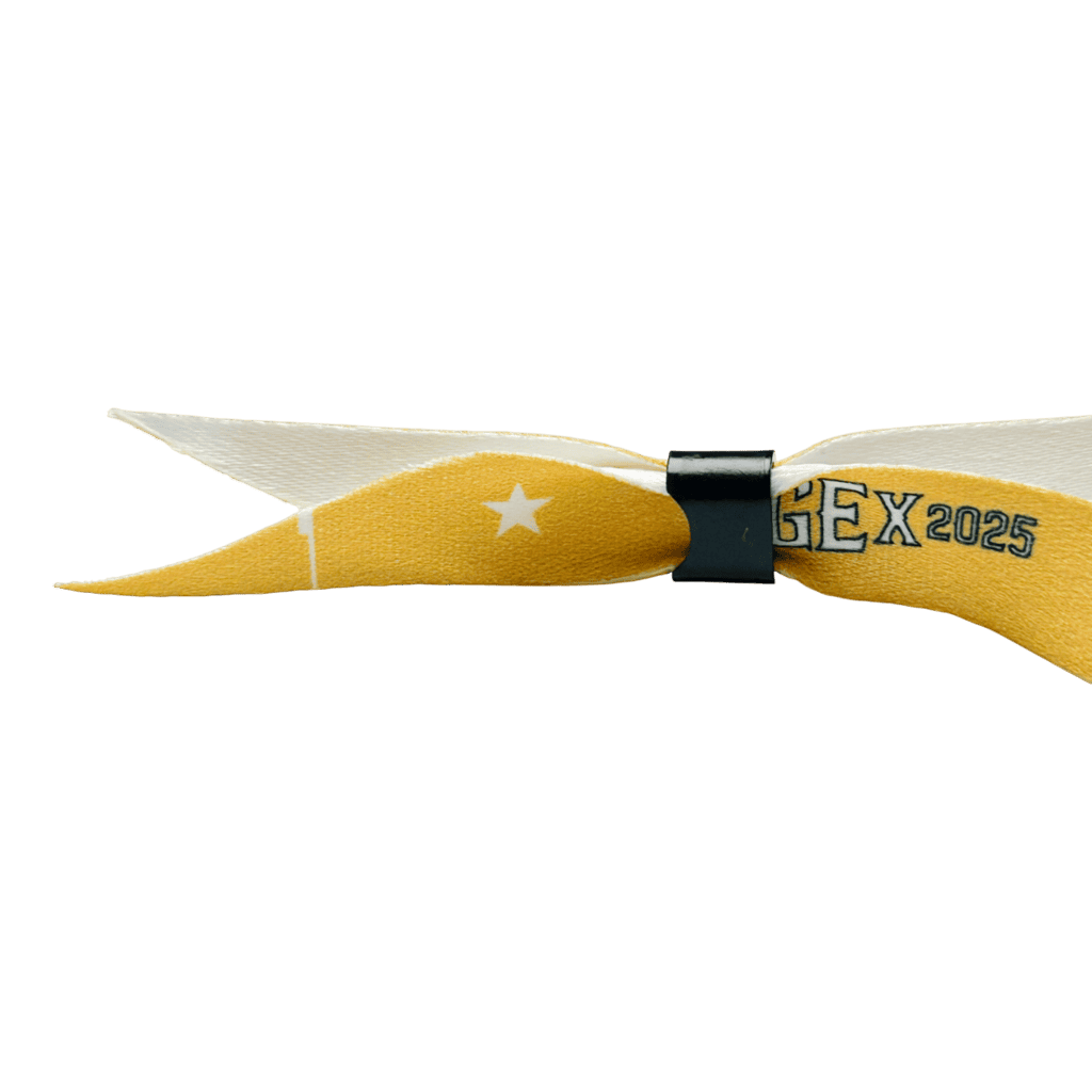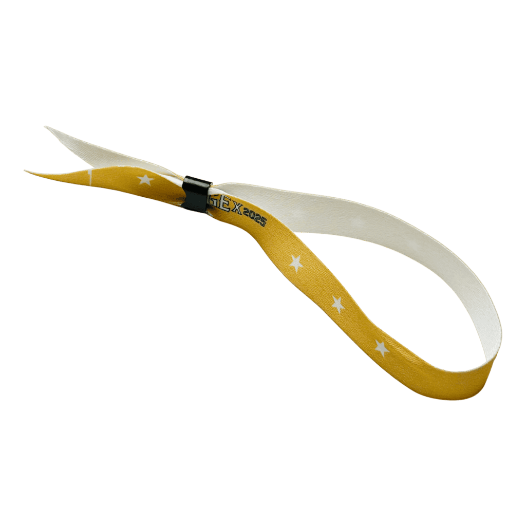 Pulseira de poliéster resistente, confortável e personalizável, ideal para controle de acesso em eventos. Oferece segurança, visual profissional e ótimo custo-benefício, garantindo organização e identificação eficiente dos participantes.